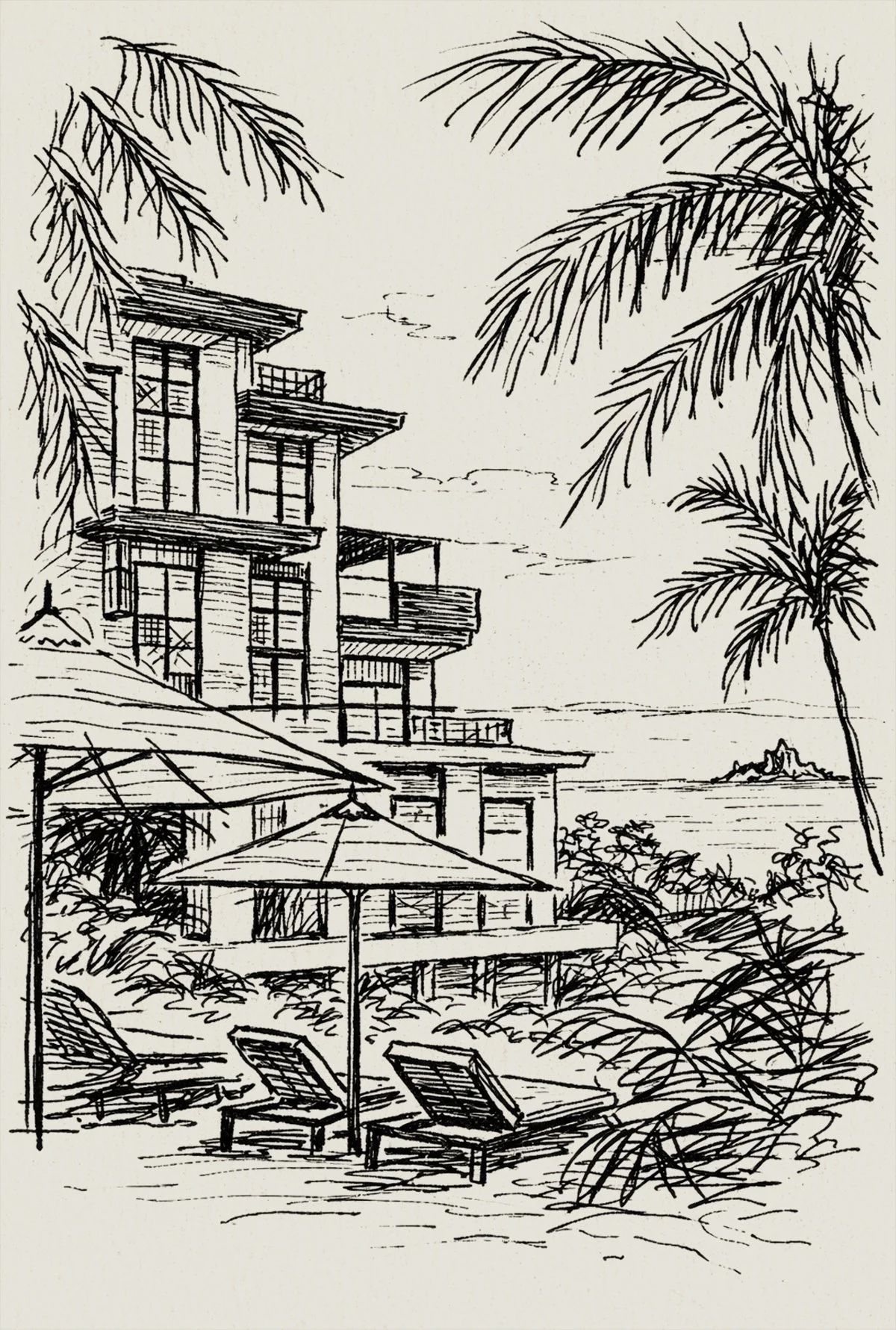 Soft structure, filtered light, and a woven wall overlooking the Caribbean.