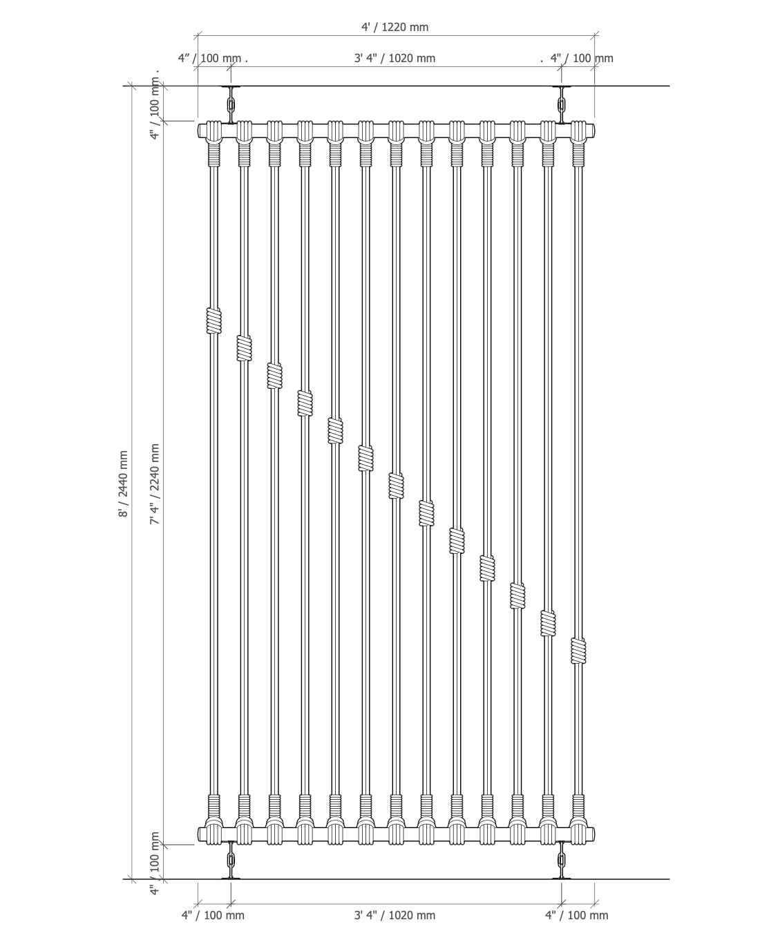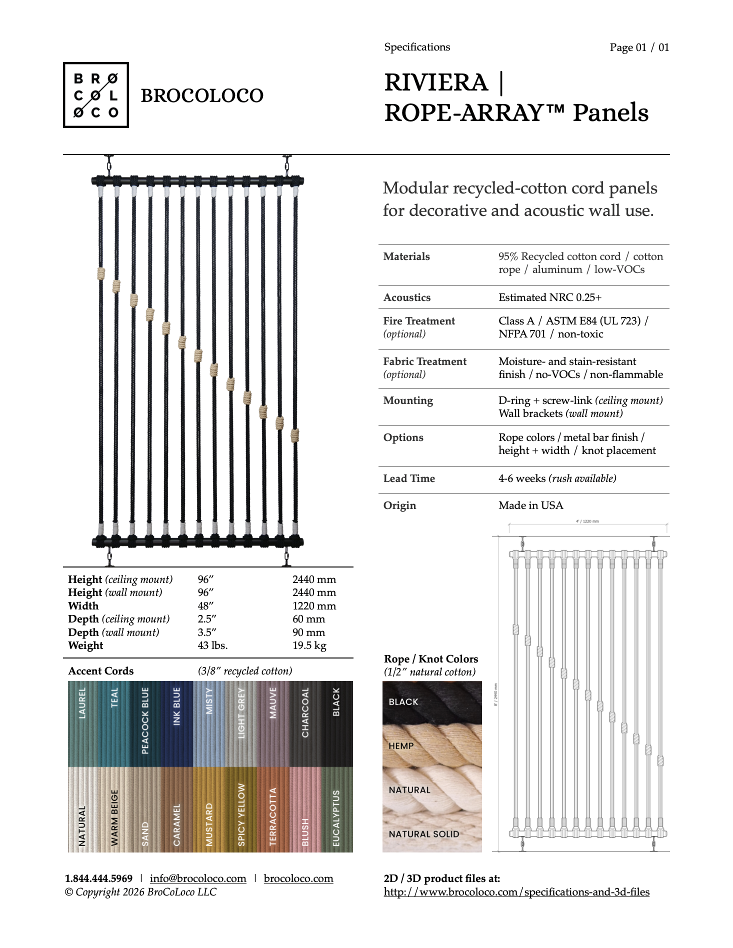 Use 2D graphic to place 33” x 46.5” rope panels in your design elevations and renderings. Tile them together for larger wall coverage.