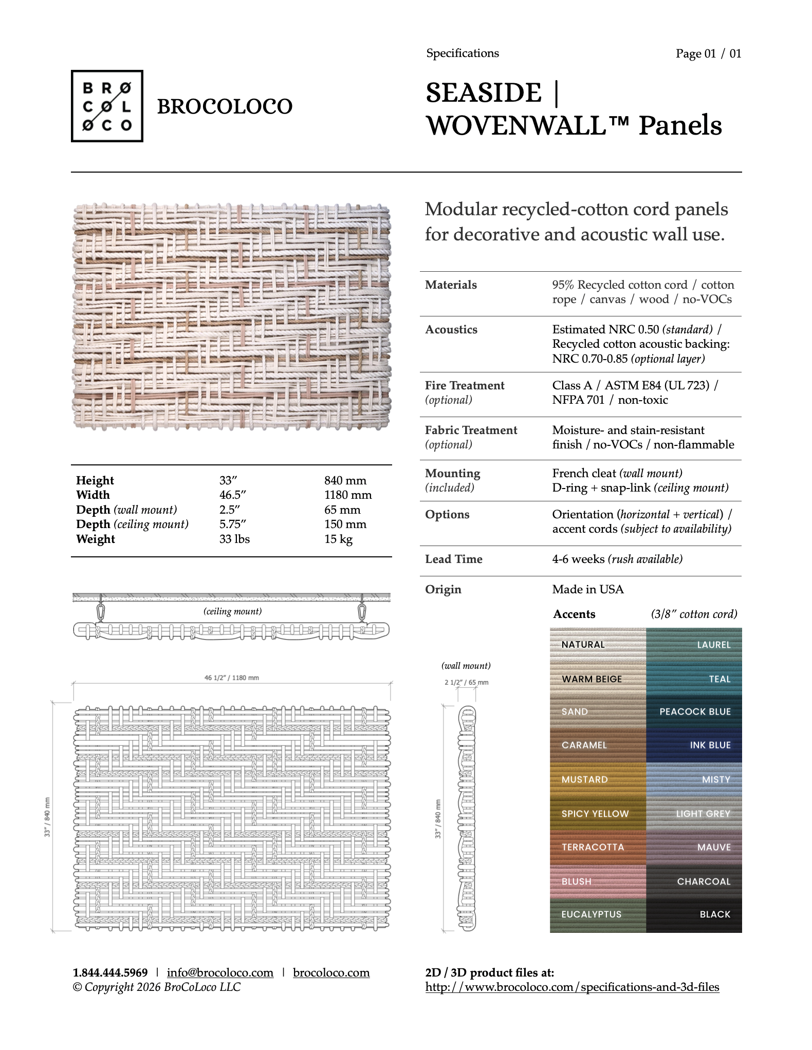 Download specification sheets for SEASIDE & HIGHLANDS | WOVENWALL™ and include in construction document sets.