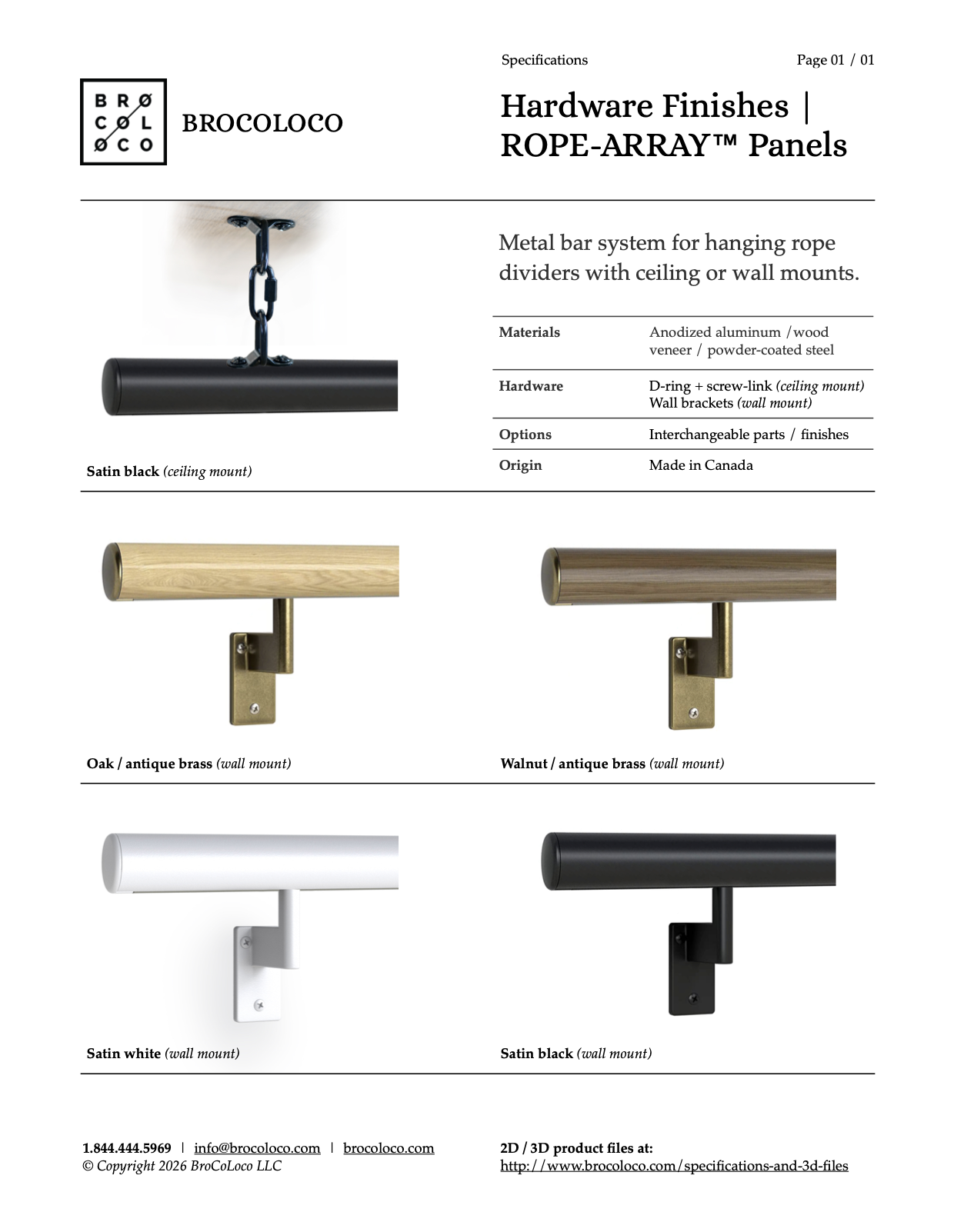 Select a metal finish for the extruded aluminum rods with wall or ceiling mounting brackets.